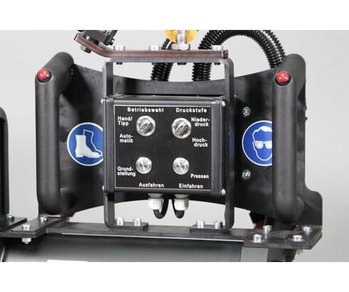 Die Vorrichtung wird mittels einer Zweihandbedienung betätigt. Die Zugkraft des Zylinders ist in einem Bereich von 10 bis 100 kN einstellbar.das dazugehörige Aggregat und die Steuerung können wahlweise an einer Kransäule montiert werden.