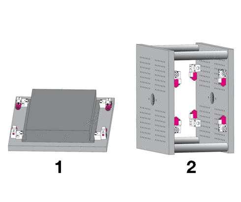 Der Spannbolzen der Keilspannelemente wird über ein Schneckengetriebe und ein Spindelhubgetriebe von einem 24 V Gleichstromantrieb betätigt. Das selbsthemmende Spindelhubgetriebe stoppt den Antrieb bei Stromausfall und hält ihn sicher in der erreichten Position.
