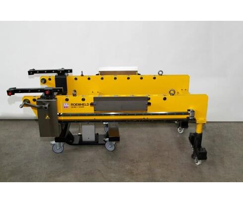 Der Pressentisch bleibt während des Wechselvorgangs frei, das heißt die Verbindungselemente der Verschiebe-Einrichtung greifen nicht über den Pressentisch. Auch die Rückseite der Presse bleibt komplett frei.