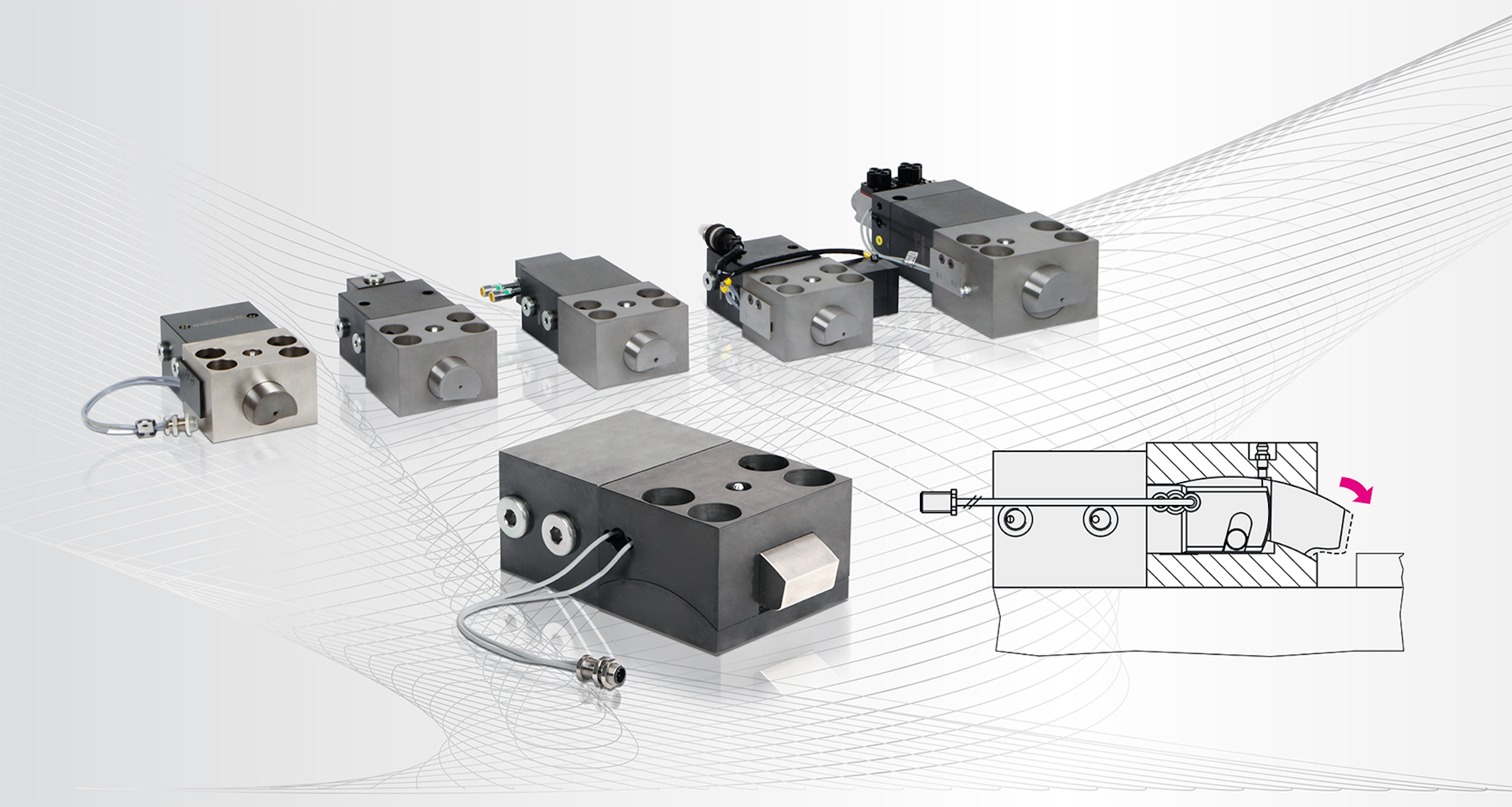 ROEMHELD: Marktführer für Werkzeugspanntechnik erweitert seine Palette an Keilspannelementen. Doppelt wirkend und auf Wunsch mit Positionskontrolle.