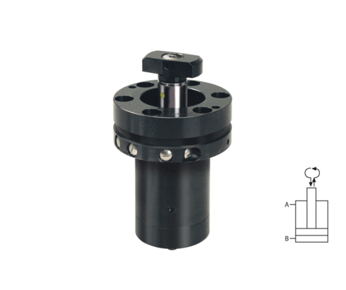 The piston is guided by a control bolt so that during the stroke movement a rotation of 45° is effected. Monitoring of the unclamping, change-over and clamping positions by inductive proximity switches.