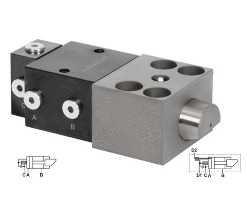 Wedge clamps with directly manifold-mounted directional control valves. Clamping and unclamping position electrically monitored. Easy to install with plug-in connections between the clamping elements.