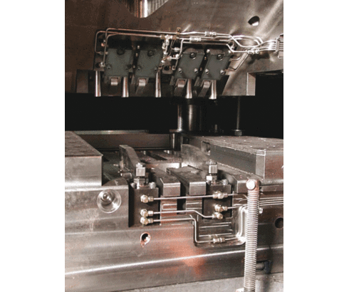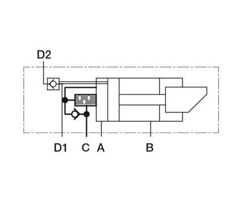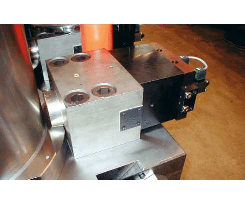 An additional valve block on the standard wedge clamp enables hydraulic control of the clamping position. Only after the last wedge clamp has been clamped, the machine control is released by a pressure switch on the pressure generator.