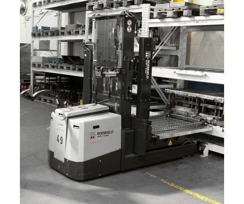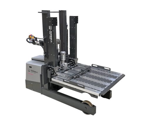 El carro para el cambio de troqueles y moldes RWT es un carro elevador con accionamiento eléctrico equipado con dispositivos especiales para el transporte y el cambio seguros de troqueles y moldes.