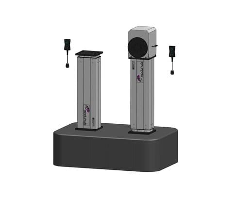The new product range is starting with electric lifting columns. These lifting columns have four force levels for workpiece weights of up to 500 kg, offer strokes of up to 600 mm and speeds of up to 50 mm/second to enable short cycle times. Optionally, rotating modules with continuous rotation can be added to the lifting columns.